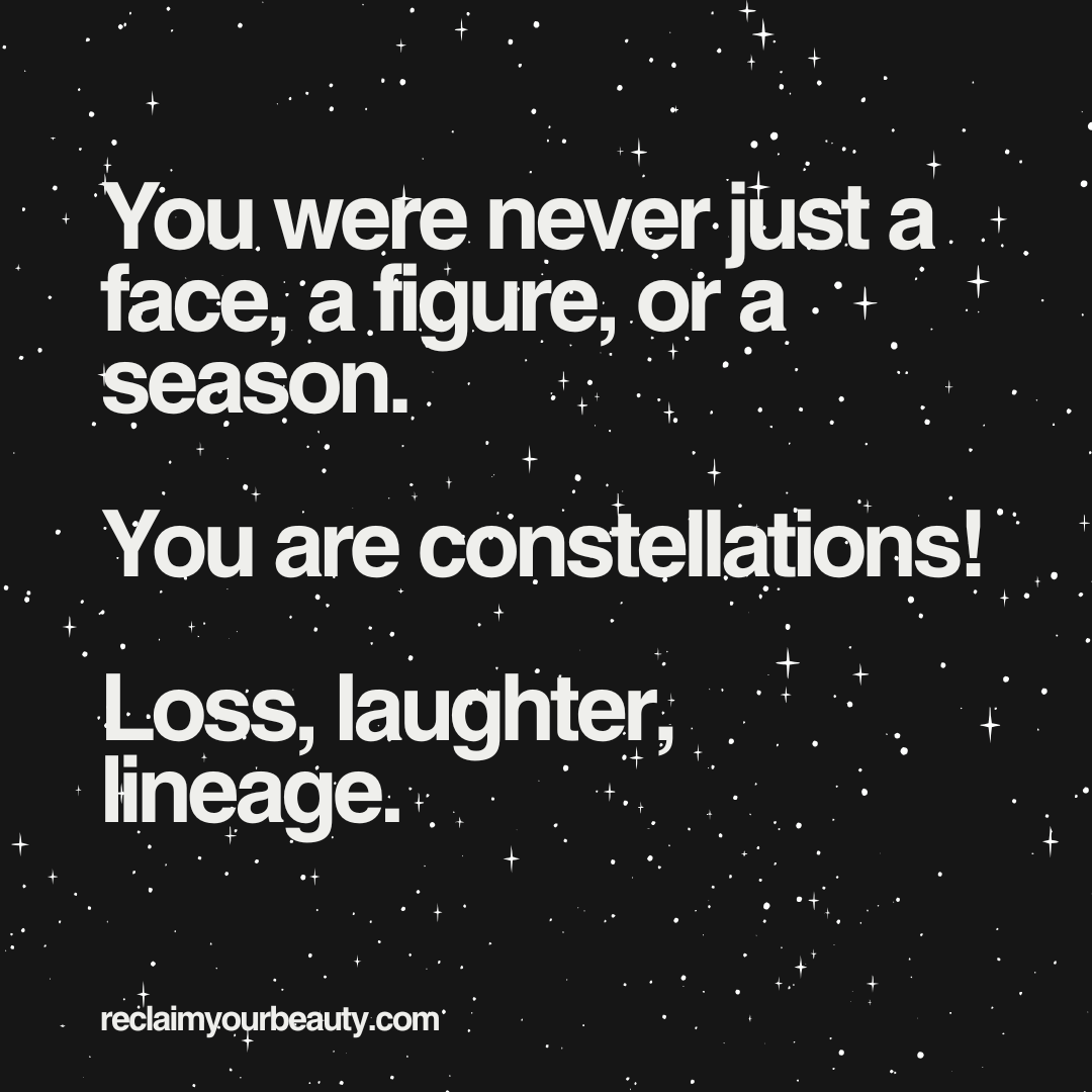You were never just a face, a figure, or a season. You are constellations! Loss, laughter, lineage.